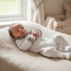 Enterito punto inglés blanco con cuello cuadrillé beige.