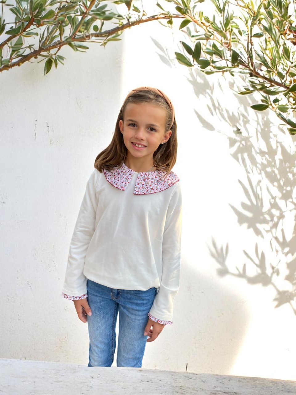 Polerón de algodón , cuello floreado con picor en la orilla.