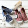 Reina de lino, color niebla. Cierre con velcro, detalle botón forrado.