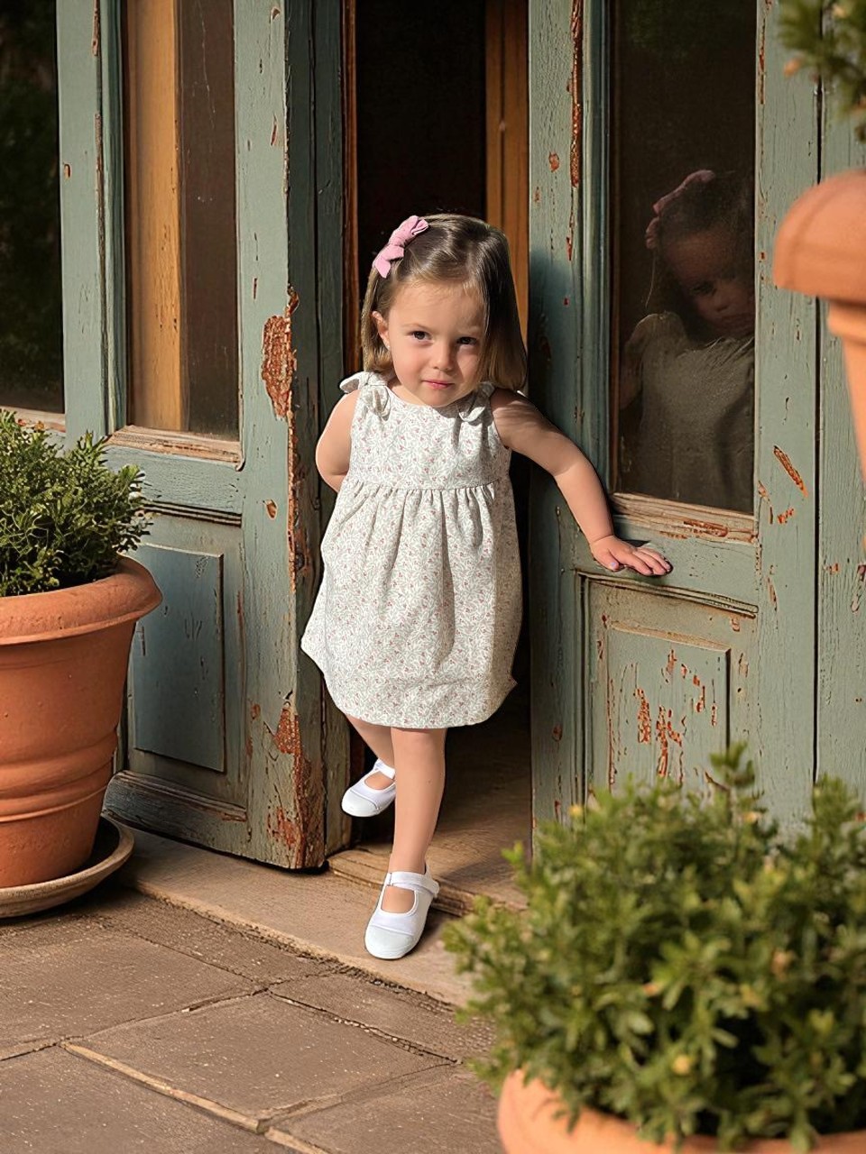 Vestido detalle nudos, fabricado en villela española con estampado floral.